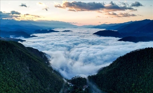 2024年1月4日,云南大理,南澗彝族自治縣公郎鎮(zhèn),瀾滄江現云海景觀。