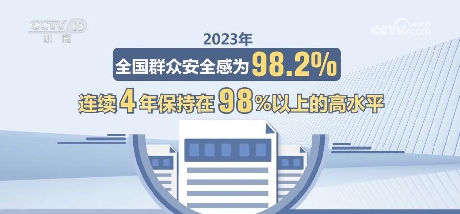 堅(jiān)持和發(fā)展新時(shí)代“楓橋經(jīng)驗(yàn),著力推動(dòng)矛盾糾紛預(yù)防化解法治化,“訪”“調(diào)”“訴”一體推進(jìn)。堅(jiān)持司法為民,做實(shí)“抓前端、治未病”,開(kāi)展矛盾糾紛高發(fā)領(lǐng)域訴源治理。部署信訪工作法治化,開(kāi)展工作試點(diǎn),努力讓群眾的每一項(xiàng)訴求都有人辦理、每一項(xiàng)訴求都依法推進(jìn)。2023年,全國(guó)群眾安全感為98.2%,連續(xù)4年保持在98%以上的高水平。