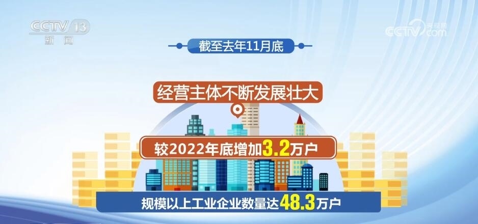 數(shù)據(jù)顯示,截至去年11月底,規(guī)模以上工業(yè)企業(yè)數(shù)量達48.3萬戶,較2022年底增加3.2萬戶,經(jīng)營主體不斷發(fā)展壯大。制造業(yè)PMI生產(chǎn)經(jīng)營活動預(yù)期指數(shù)自2023年10月連續(xù)3個月上升,全年指數(shù)均高于臨界點,制造業(yè)企業(yè)對發(fā)展信心穩(wěn)定恢復(fù)。