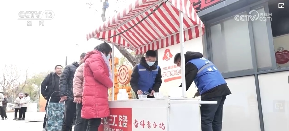 在湖北武漢武昌區(qū)一家工會(huì)驛站里,工會(huì)組織和街道也專門為外賣員、快遞員和環(huán)衛(wèi)、城管工作人員等戶外勞動(dòng)者們,熬制了一大鍋臘八粥。