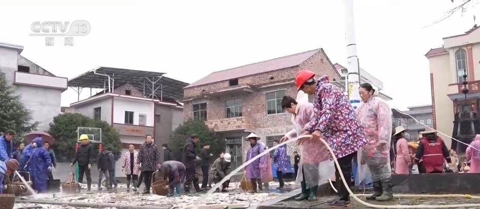 日前,在江西吉安永新縣高市鄉(xiāng)塘內(nèi)村,一場(chǎng)分魚活動(dòng)正在舉行。村里的男女老少齊上陣,將剛剛打撈上來的魚鋪滿廣場(chǎng),按照種類和大小分好,一起共享收獲。