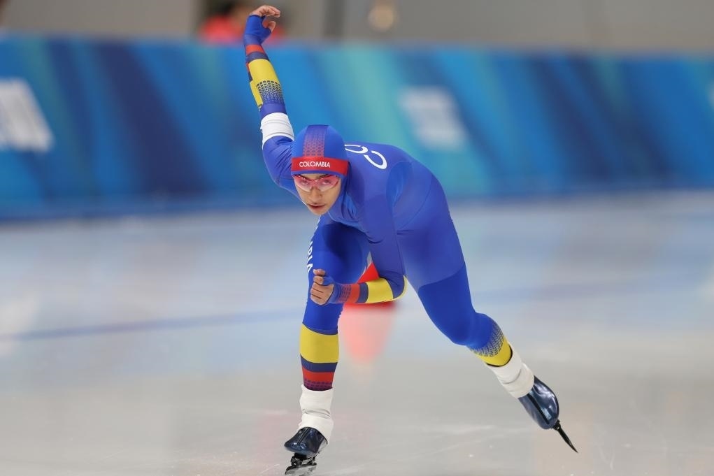 哥倫比亞速滑運動員伊莎貝拉·古鐵雷斯在女子1500米比賽中。新華社記者 許雅楠 攝