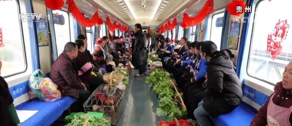 買年貨,除了商超、集市,批發(fā)市場(chǎng),還可以在火車上。在貴州,有一趟往返于貴陽(yáng)與玉屏之間的“慢火車”5640次列車,里面專設(shè)了一個(gè)農(nóng)特產(chǎn)品車廂。新春臨近,列車上的農(nóng)特產(chǎn)品車廂變得熱鬧起來(lái),村民們將自家養(yǎng)殖的土雞、雞蛋,熏制的香腸、臘肉,以及水果、蔬菜帶上列車,向旅客現(xiàn)場(chǎng)售賣,車廂里喜氣洋洋。