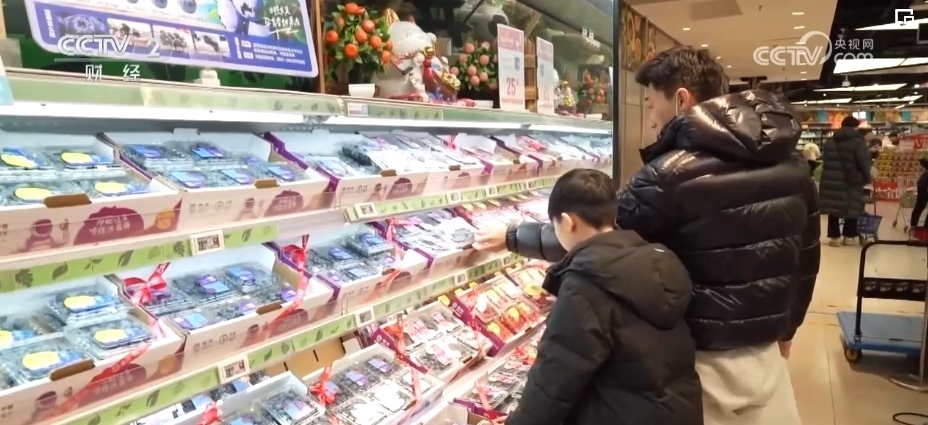 除了蘋果,各類葡萄、柑橘、車厘子、草莓、藍莓、菠蘿、榴蓮等水果也大量上市。僅記者采訪的這家生鮮超市,新奇特品種相比2023年,就有5%—10%的增長,春節(jié)前更是有100多款水果在店內(nèi)銷售,豐富了百姓的“果盤子”。