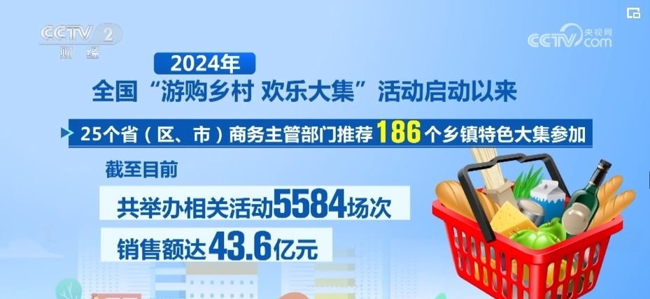 記者從商務部獲悉,2024年全國“游購鄉(xiāng)村 歡樂大集”活動啟動以來,25個?。▍^(qū)、市)商務主管部門推薦186個鄉(xiāng)鎮(zhèn)特色大集參加。截至目前,共舉辦相關(guān)活動5584場次,銷售額達43.6億元。