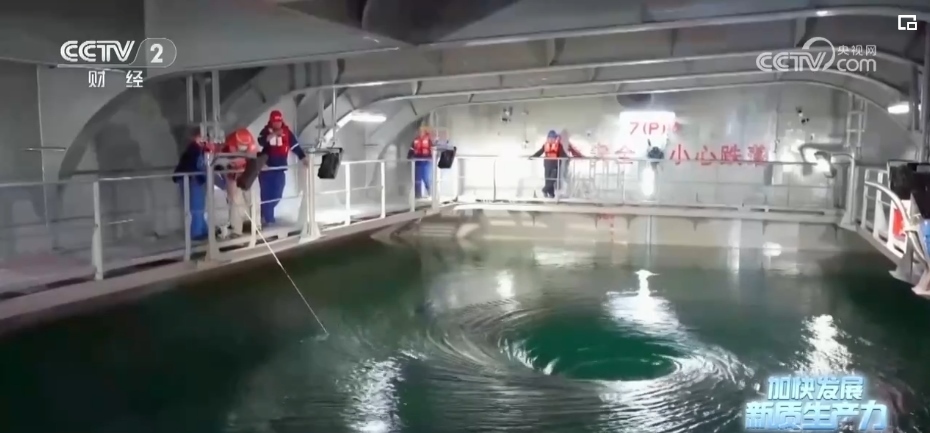 依靠首創(chuàng)的“船載艙養(yǎng)”模式,國(guó)信1號(hào)養(yǎng)殖工船,每年能實(shí)現(xiàn)3700噸高品質(zhì)魚類和650噸優(yōu)質(zhì)蛋白的供給。到了收獲的時(shí)候,艙內(nèi)的大黃魚將通過(guò)吸魚泵和傳送帶直接轉(zhuǎn)運(yùn)至休眠池,在那里進(jìn)行快速降溫休眠鎖鮮。