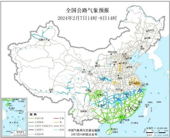 圖3 全國公路氣象預報圖(2月7日14時-8日14時)
