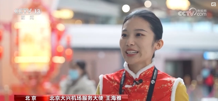 北京大興機(jī)場服務(wù)大使 王海雅:我希望帶父母來看一看女兒工作的地方,永遠(yuǎn)都是在手機(jī)上看,這一次能夠看一看。因為他們已經(jīng)60多歲,希望帶他們?nèi)テ渌牡胤蕉嘧咭蛔摺?br>