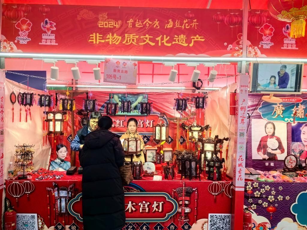 廣州欖雕、廣繡、打銅工藝、廣州醒獅、廣州餅印、粵語(yǔ)相聲、廣式紅木宮燈等8個(gè)非遺項(xiàng)目亮相花市,吸引游客駐足觀賞?,F(xiàn)場(chǎng)展出的160多個(gè)賣(mài)花檔口中,粉色的劍蘭、潔白的百合、火紅的玫瑰、金燦燦的年橘等依舊是“搶手貨”,而具有“財(cái)源滾滾來(lái)”意頭的吊鐘花也得到不少市民的青睞。