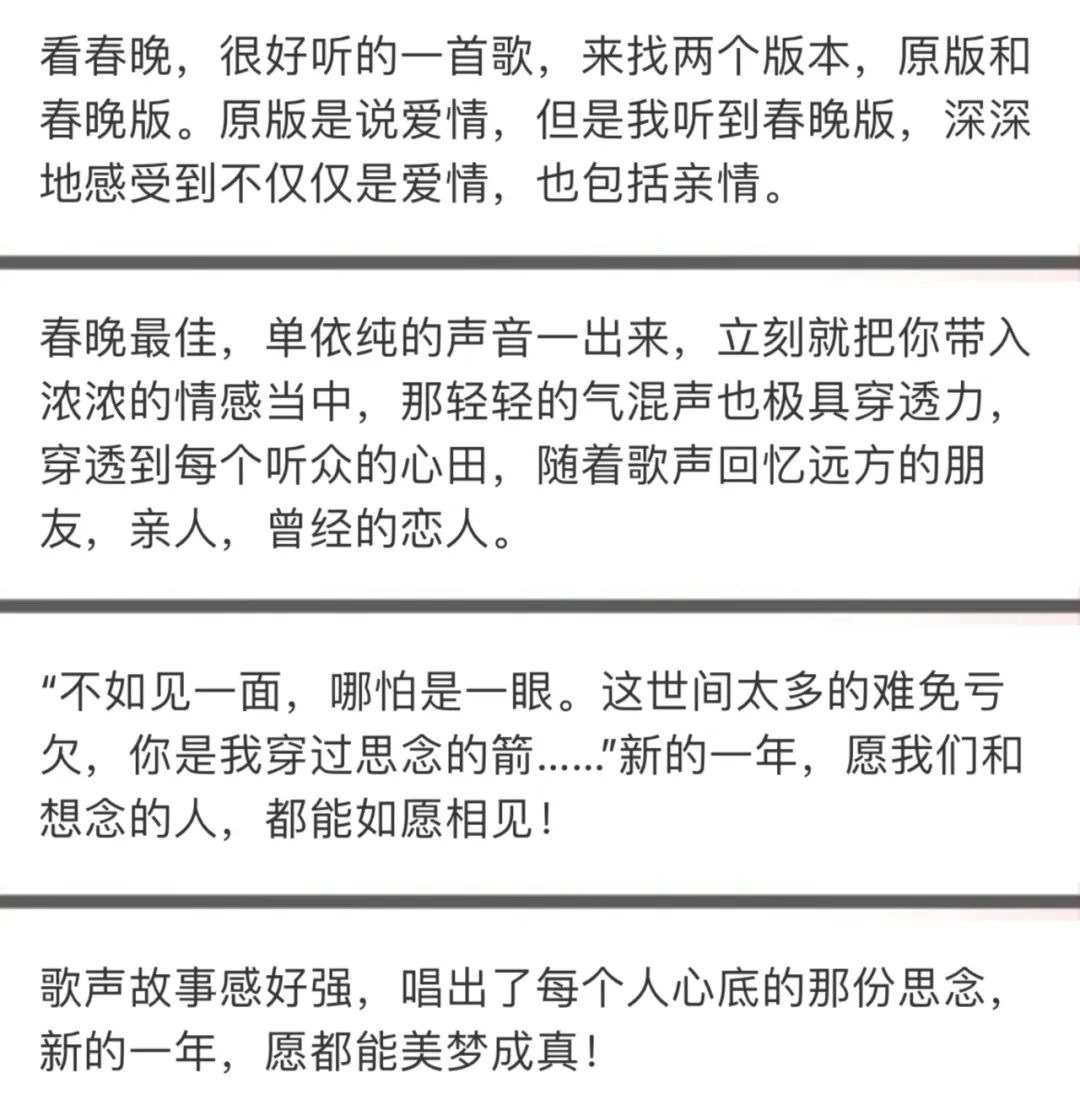這首《不如見一面》迅速沖上各大音樂平臺的熱搜榜首位,“從春晚來的”網(wǎng)友涌進評論區(qū),書寫起自己的故事。一首氣質(zhì)凄美的歌,為何能如此抓人,讓人忍不住反復(fù)“單曲循環(huán)”?