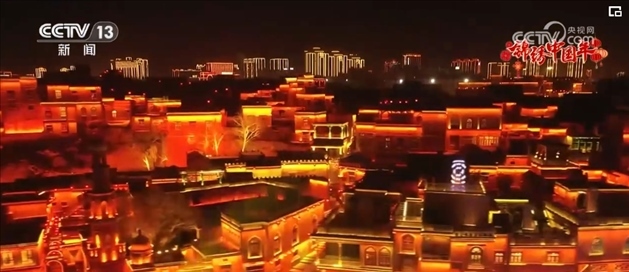 當夜幕降,臨燈光亮起,總臺春晚新疆喀什分會場主舞臺在與喀什古城民居交相輝映,喀什古城變了浪漫舞臺。土陶店、手打銅器店等特色店鋪門前站滿了游客??救?、抓飯、鴿子湯等特色美食更是吸引著大家駐足品嘗。