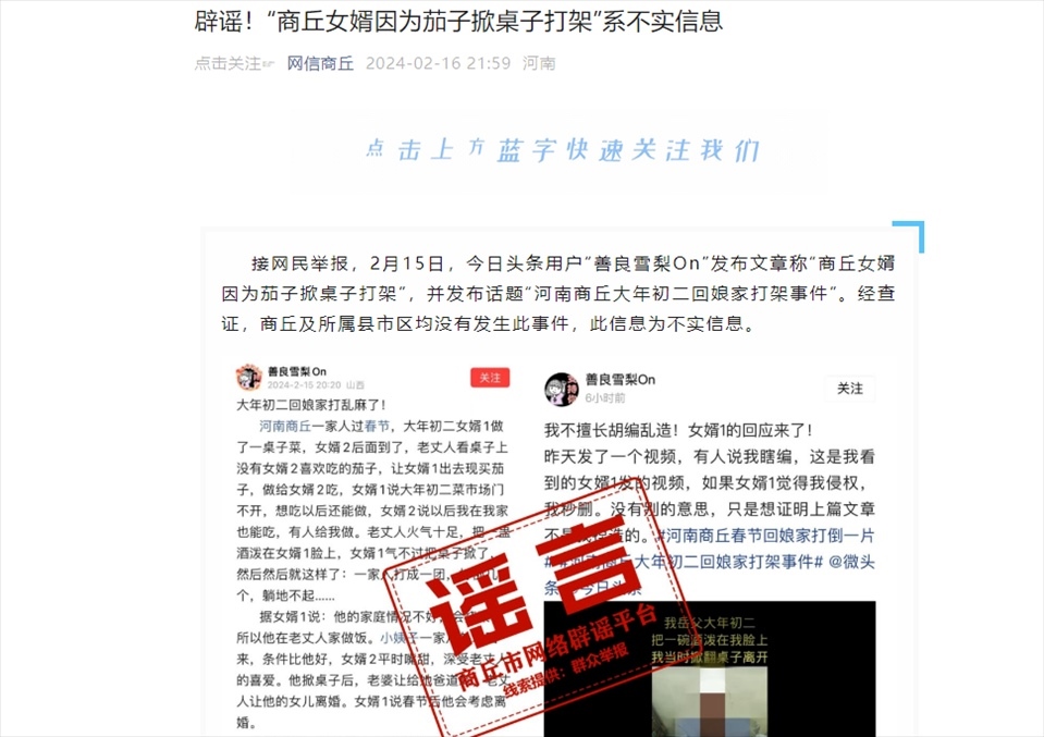 ·官方辟謠女婿因買(mǎi)茄子掀桌打架:不實(shí)信息,公安部門(mén)正在采取措施。