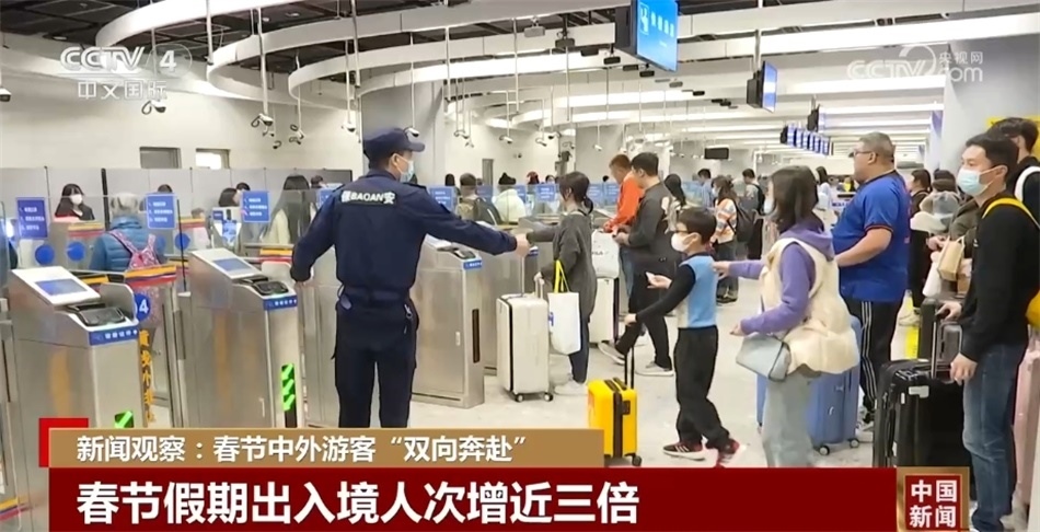 春節(jié)前,中國(guó)對(duì)多個(gè)國(guó)家單方面免簽證,今年春節(jié)出境游、入境游訂單均超過2019年同期。其中,出境游創(chuàng)下近4年峰值,預(yù)訂量同比增長(zhǎng)近10倍。全國(guó)邊檢機(jī)關(guān)共驗(yàn)放中外出入境人員1351.7萬(wàn)人次,較2023年春節(jié)同期增長(zhǎng)2.8倍,恢復(fù)至2019年春節(jié)同期的近九成。