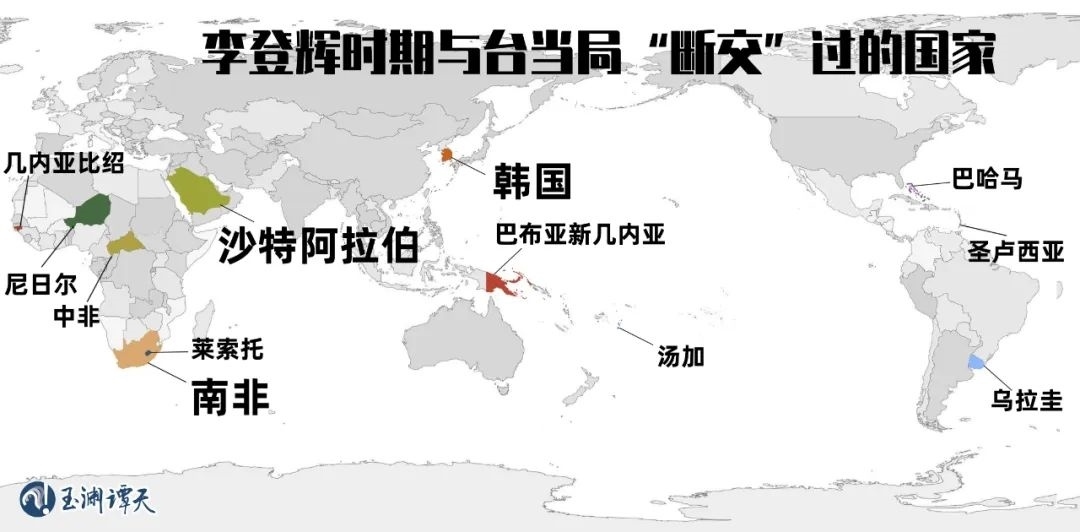 1988年,李登輝上臺,擔(dān)任臺灣地區(qū)領(lǐng)導(dǎo)人。此時(shí),臺灣當(dāng)局的“邦交國”僅剩下了22個(gè)。