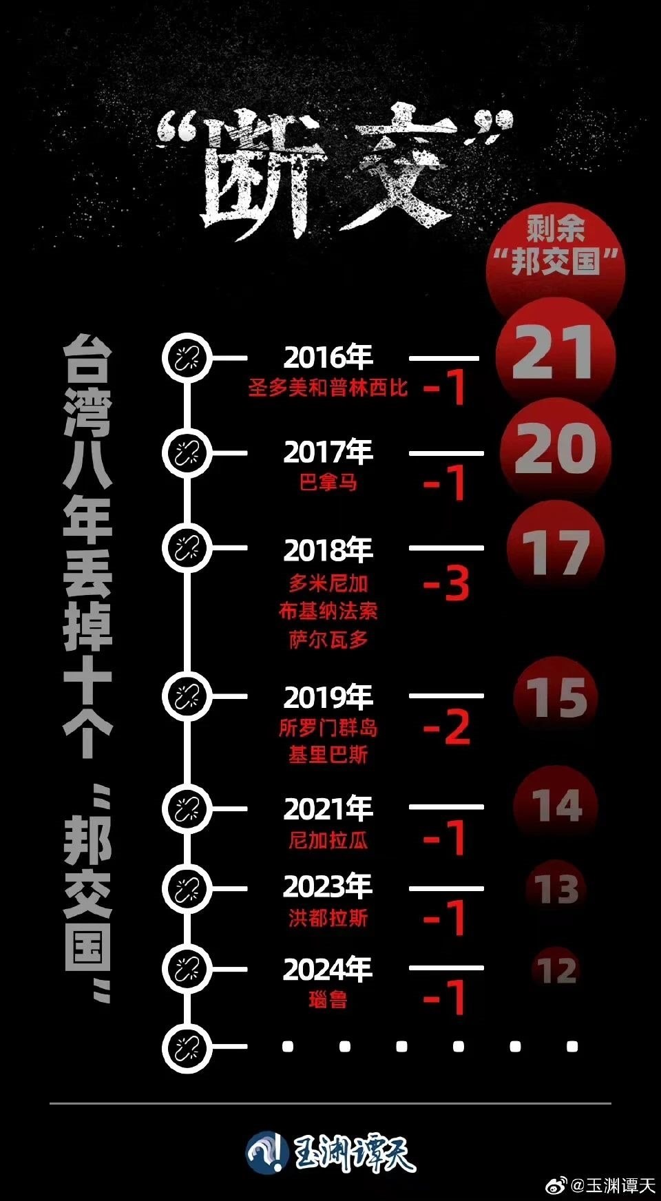 這一輪“斷交”,有一個(gè)突出特點(diǎn),臺灣當(dāng)局所謂重要的“邦交國”全部與其斷交。