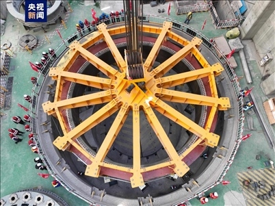 ·青海:黃河上游羊曲水電站1號機組定子吊裝成功。