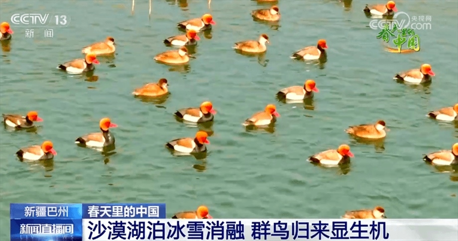 伴隨著陣陣?guó)B鳴,我們來(lái)到新疆巴州尉犁縣羅布淖爾國(guó)家濕地公園,碧綠的水面上,成群結(jié)隊(duì)的赤嘴潛鴨、赤麻鴨等鳥類時(shí)而用翅膀拍打水面展翅飛翔,時(shí)而三五成群在水中嬉戲、覓食,群鳥與黃沙、碧水、葦叢、胡楊交相輝映,形成一幅生機(jī)勃勃的春日畫卷。
