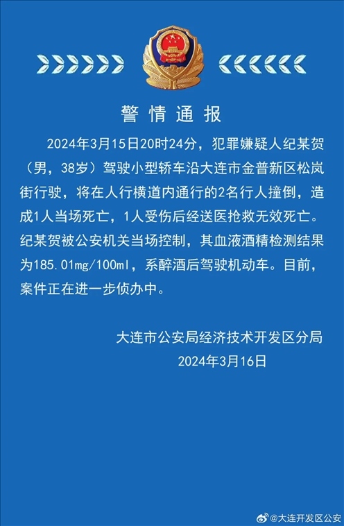 ·男子醉駕致2人死亡,大連警方通報(bào)。