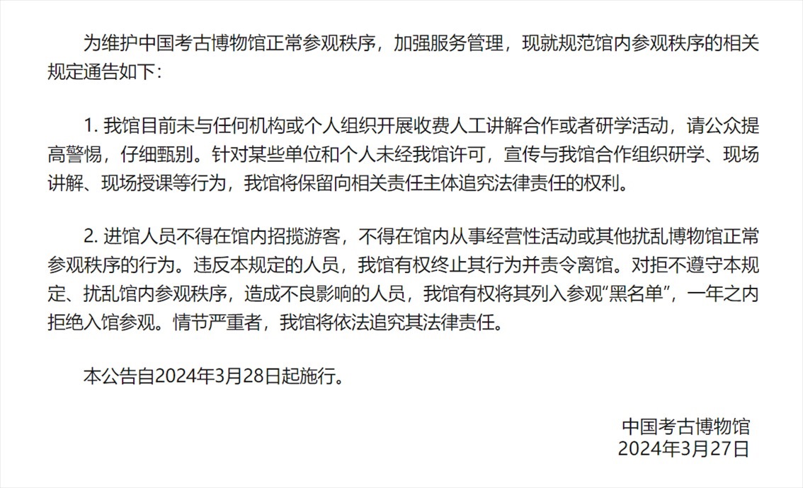 ·中國(guó)考古博物館發(fā)布公告,將規(guī)范館內(nèi)參觀秩序。