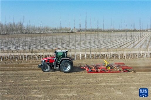 在新疆阿克蘇地區(qū)阿瓦提縣阿依巴格鎮(zhèn)幸福村,精量播種機在棉田春播(3月26日攝)。