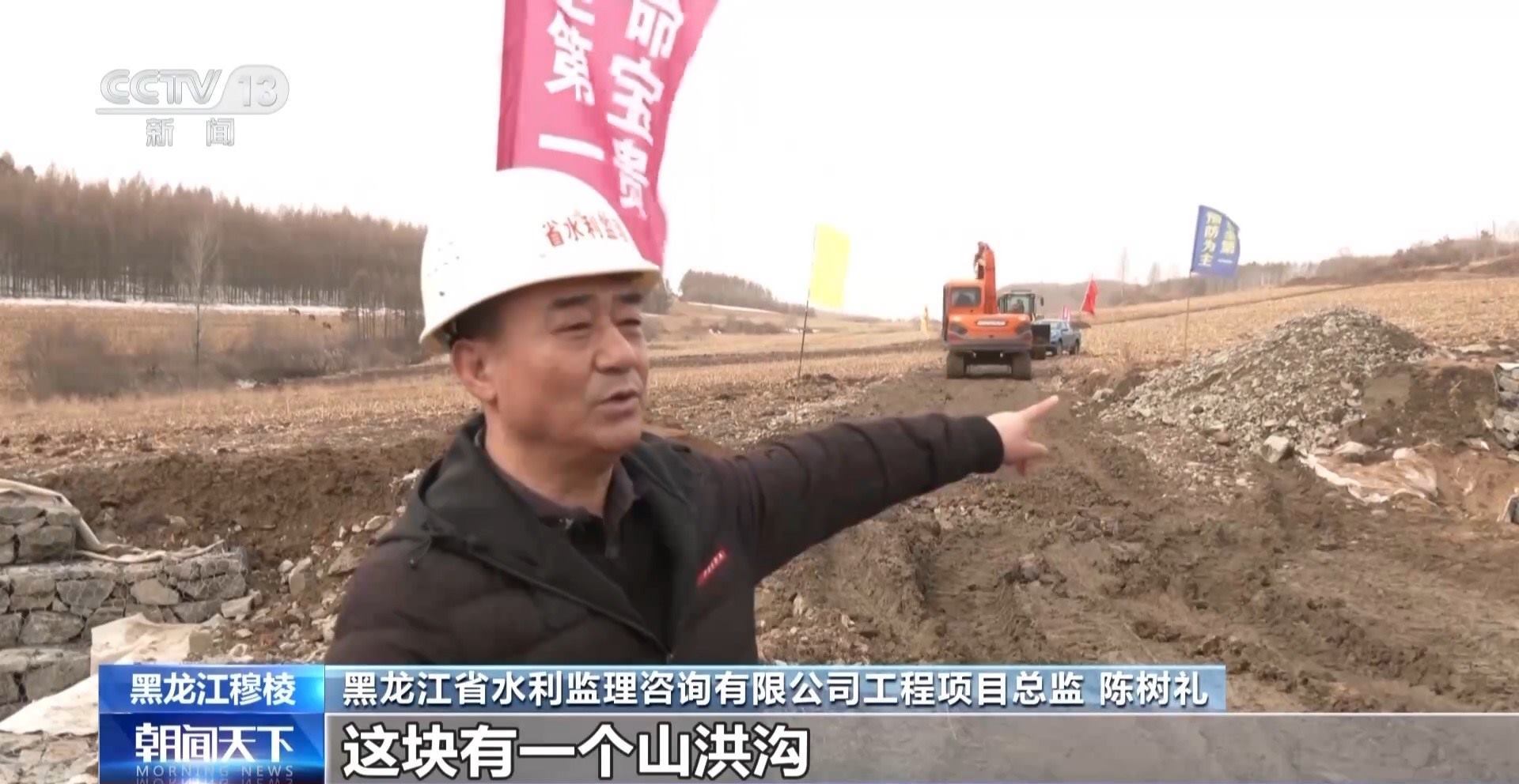 黑龍江省水利監(jiān)理咨詢有限公司工程項目總監(jiān) 陳樹禮:這塊有一個山洪溝,水土流失非常嚴(yán)重,通過項目把這個(地方)用石籠進行護砌,保證土地面積不受沖刷。