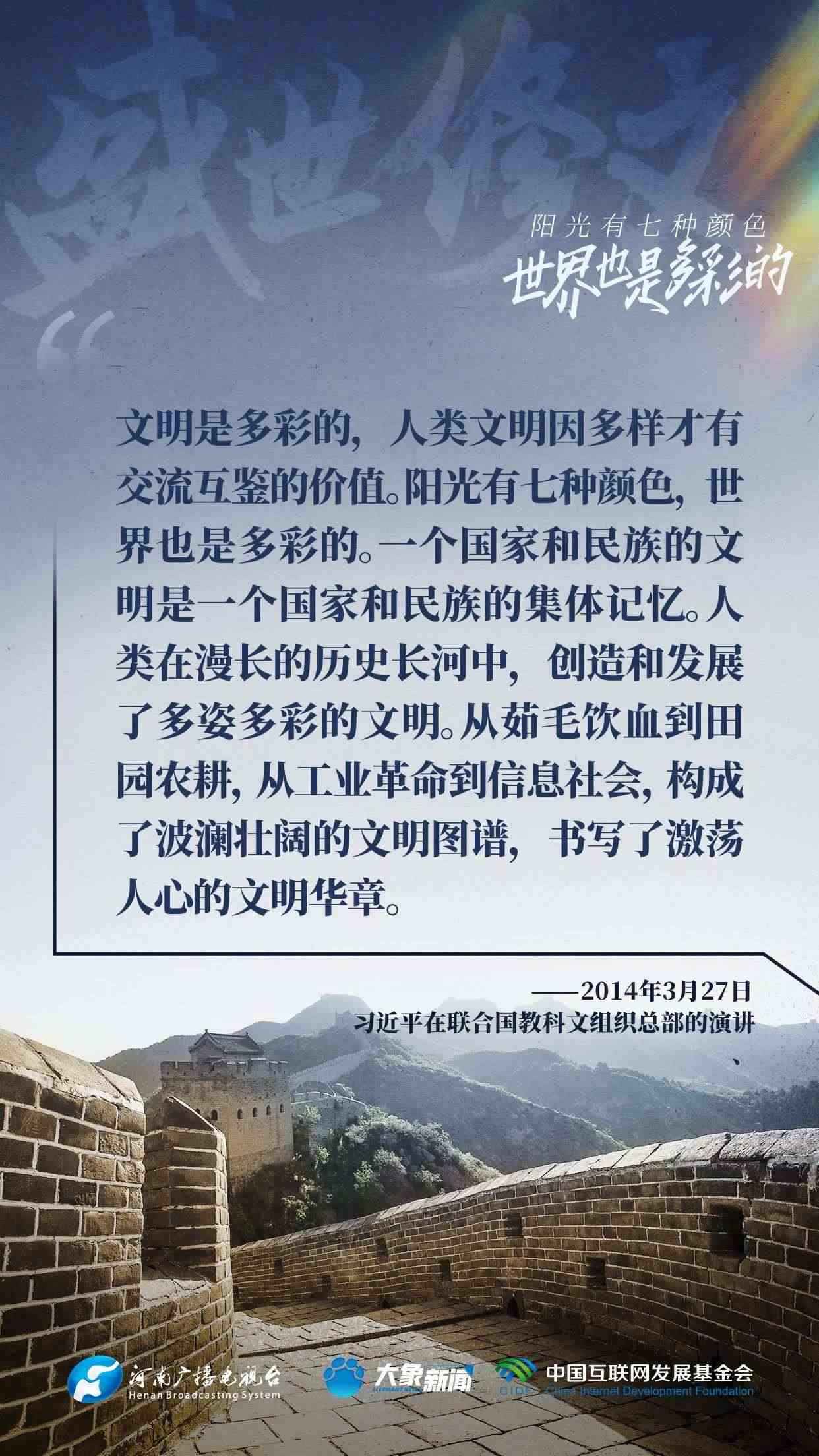 今天推出:習近平文化思想金句之《盛世修文|陽光有七種顏色,世界也是多彩的》