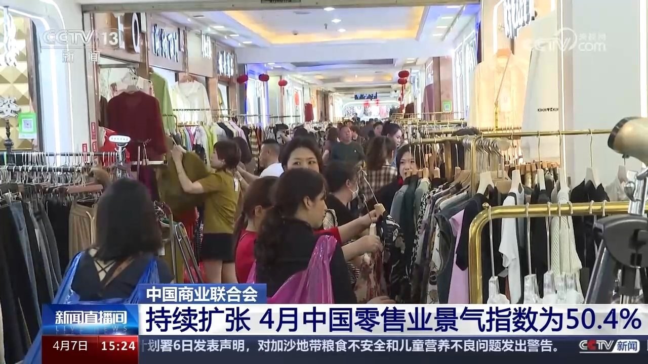 央視網消息:中國商業(yè)聯(lián)合會最新發(fā)布的中國零售業(yè)景氣指數(shù)顯示,4月份,中國零售業(yè)景氣指數(shù)為50.4%,連續(xù)一年維持在擴張區(qū)間。全國商品經營類企業(yè)對4月份盈利增長恢復的預期開始好轉。