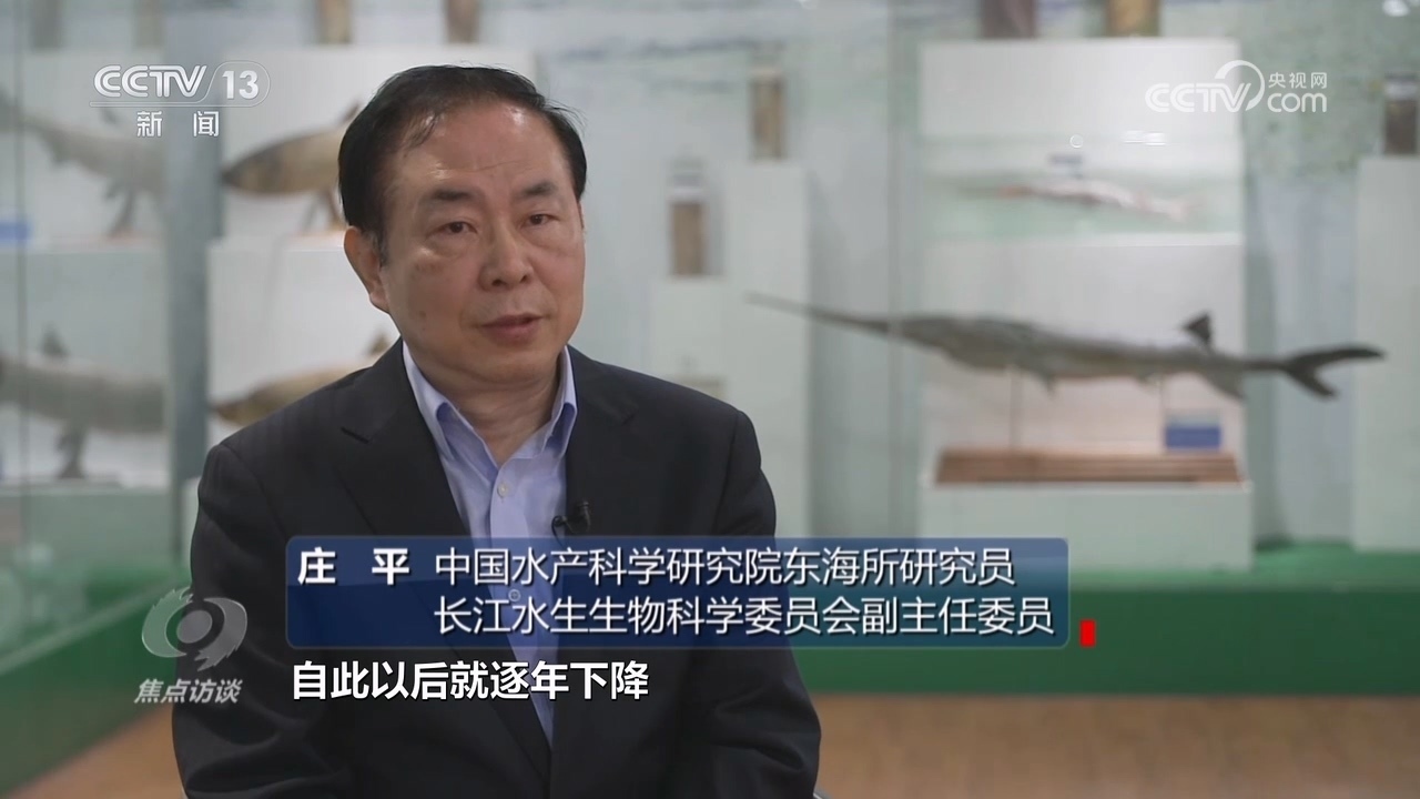 中國水產(chǎn)科學(xué)研究院東海所研究員、長江水生生物科學(xué)委員會副主任委員莊平:“有記錄以來長江漁業(yè)資源的總量,在1954年漁業(yè)產(chǎn)量是最高峰,達到了45萬噸,自此以后就逐年下降,到長江禁漁之前只有10萬噸還不到。另外,在長江中瀕危物種增加的速度也是非??斓?,還有些物種滅絕了,比如2007年宣布‘長江女神’白鱀豚功能性滅絕。2022年,世界自然保護聯(lián)盟也就是IUCN宣布長江白鱘滅絕、長江鱘野外滅絕,還有一些沒有被官方宣布滅絕的種類也是多年未見,比如長江鰣魚?!?/p>
