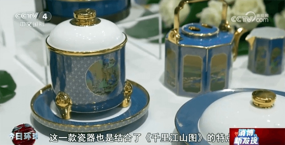 江西省景德鎮(zhèn)市商務(wù)局工作人員章少聰介紹稱:“這一幅畫是北宋王希孟先生創(chuàng)作的,叫作《千里江山圖》。這一款瓷器也是結(jié)合了《千里江山圖》的特點(diǎn),把中國(guó)傳統(tǒng)畫中的山水、花鳥(niǎo)都完全在瓷器上面展現(xiàn)出來(lái)?!?/p>