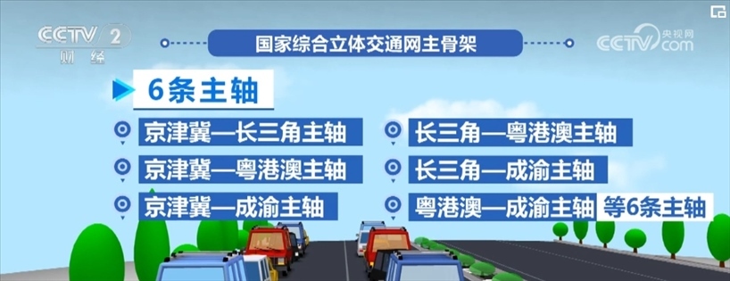 國(guó)家綜合立體交通網(wǎng)主骨架可以概括為“6軸、7廊、8通道”,即6條主軸、7條走廊、8條通道。