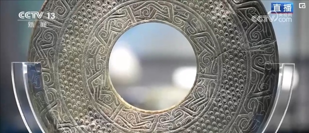 通過8K超高清攝像機(jī)可以清晰看到,鎮(zhèn)館之寶魯國大玉璧的紋飾區(qū)域多達(dá)3層,內(nèi)圈和外圈是象征權(quán)力的龍紋,中間這一圈是象征五谷豐登的谷紋。玉璧是祭天的禮器,作為戰(zhàn)國時期形制最大的玉璧,它充分展現(xiàn)了魯國對禮制和農(nóng)業(yè)的重視。