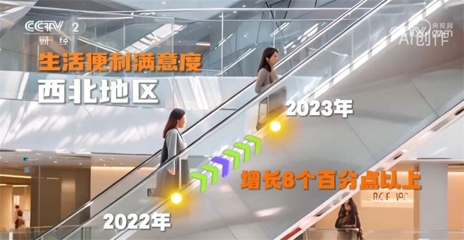 生活便利方面的滿意度較前一年增長了6個百分點(diǎn)。華南地區(qū)滿意度最高;西北地區(qū)增長幅度最大,達(dá)到了8個百分點(diǎn)以上。