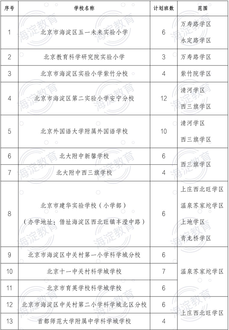 持有海淀區(qū)《學齡人口信息采集表》的適齡兒童且戶口所在地或者實際居住地屬于萬壽路學區(qū)、永定路學區(qū)、羊坊店學區(qū)、八里莊學區(qū)、紫竹院學區(qū)、海淀學區(qū)、中關村學區(qū)、北太平莊學區(qū)、上地學區(qū)、青龍橋?qū)W區(qū)、清河學區(qū)、西三旗學區(qū)、上莊西北旺學區(qū)、溫泉蘇家坨學區(qū)之一,對應范圍內(nèi)的兒童僅可填報一所公辦中學舉辦小學部及新建小學。