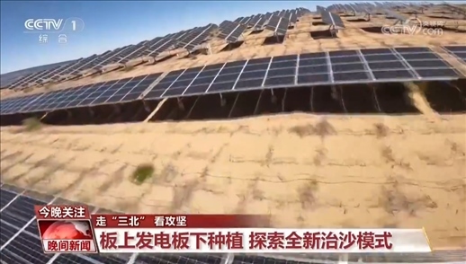 總臺(tái)記者 李欣蔓:治沙的腳步不但沒有停,還在不斷探索新的治沙模式?,F(xiàn)在我們看到的是鄂爾多斯一個(gè)已經(jīng)建好、并網(wǎng)發(fā)電的光伏項(xiàng)目,板上發(fā)電,板下種植,一個(gè)空間全方位利用。三重防線,構(gòu)建起了全新的生態(tài)治沙模式。有一個(gè)數(shù)據(jù)值得我們關(guān)注,這里的光伏項(xiàng)目占地39萬(wàn)畝,與此同時(shí),生態(tài)治理面積也將規(guī)劃完成39萬(wàn)畝。在國(guó)家推進(jìn)光伏治沙項(xiàng)目開發(fā)建設(shè)的進(jìn)程中,我們看到越來(lái)越多的企業(yè)參與其中,在發(fā)展新能源產(chǎn)業(yè)的同時(shí)共同擔(dān)負(fù)起治沙的責(zé)任,為一片藍(lán)海,一片綠洲的建設(shè),貢獻(xiàn)更多的力量。