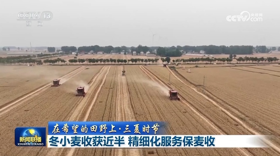 央視網(wǎng)消息(新聞聯(lián)播):農(nóng)業(yè)農(nóng)村部最新數(shù)據(jù)顯示,當(dāng)前全國(guó)已收獲冬小麥面積1.57億畝,收獲進(jìn)度近半。各地因地制宜推出了各類(lèi)服務(wù)舉措,保障小麥顆粒歸倉(cāng)。