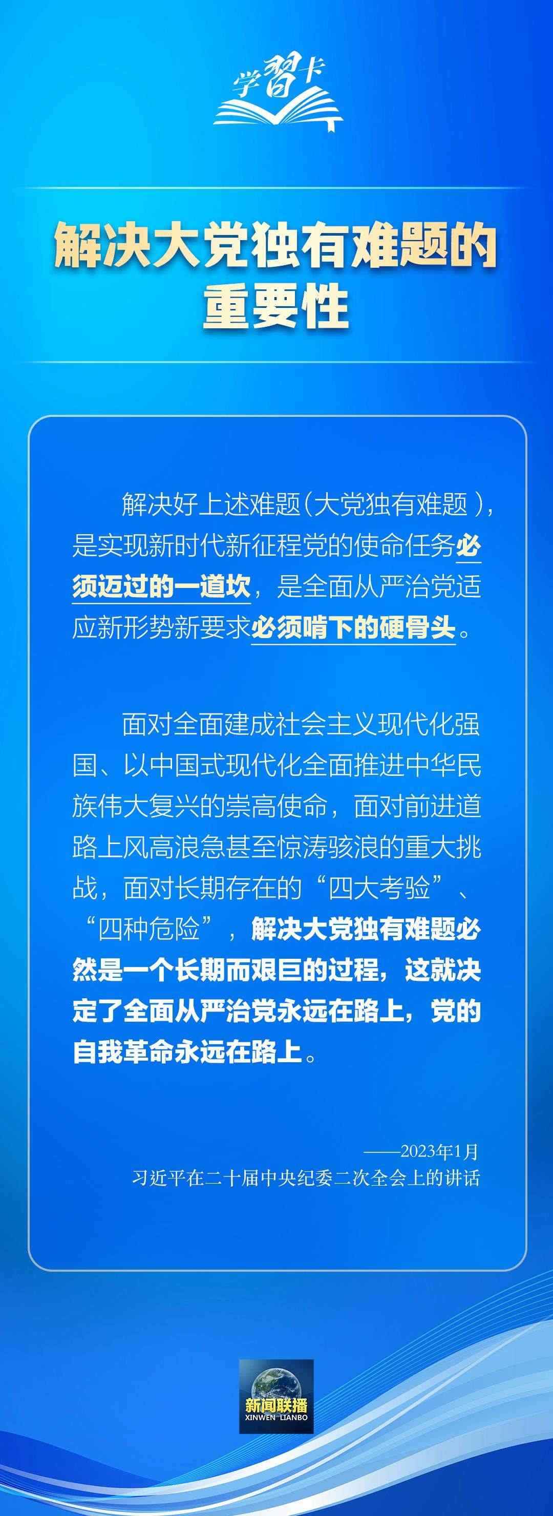 習(xí)近平總書記在不同場合多次強(qiáng)調(diào)全面從嚴(yán)治黨、黨的自我革命的重要性。解決好大黨獨有難題,是實現(xiàn)新時代新征程黨的使命任務(wù)必須邁過的一道坎,是全面從嚴(yán)治黨適應(yīng)新形勢新要求必須啃下的硬骨頭。