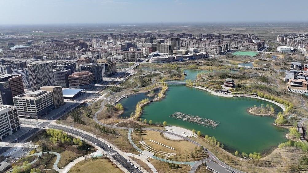 這是雄安新區(qū)金湖公園(2024年3月29日攝,無人機照片)。新華社記者 牟宇 攝