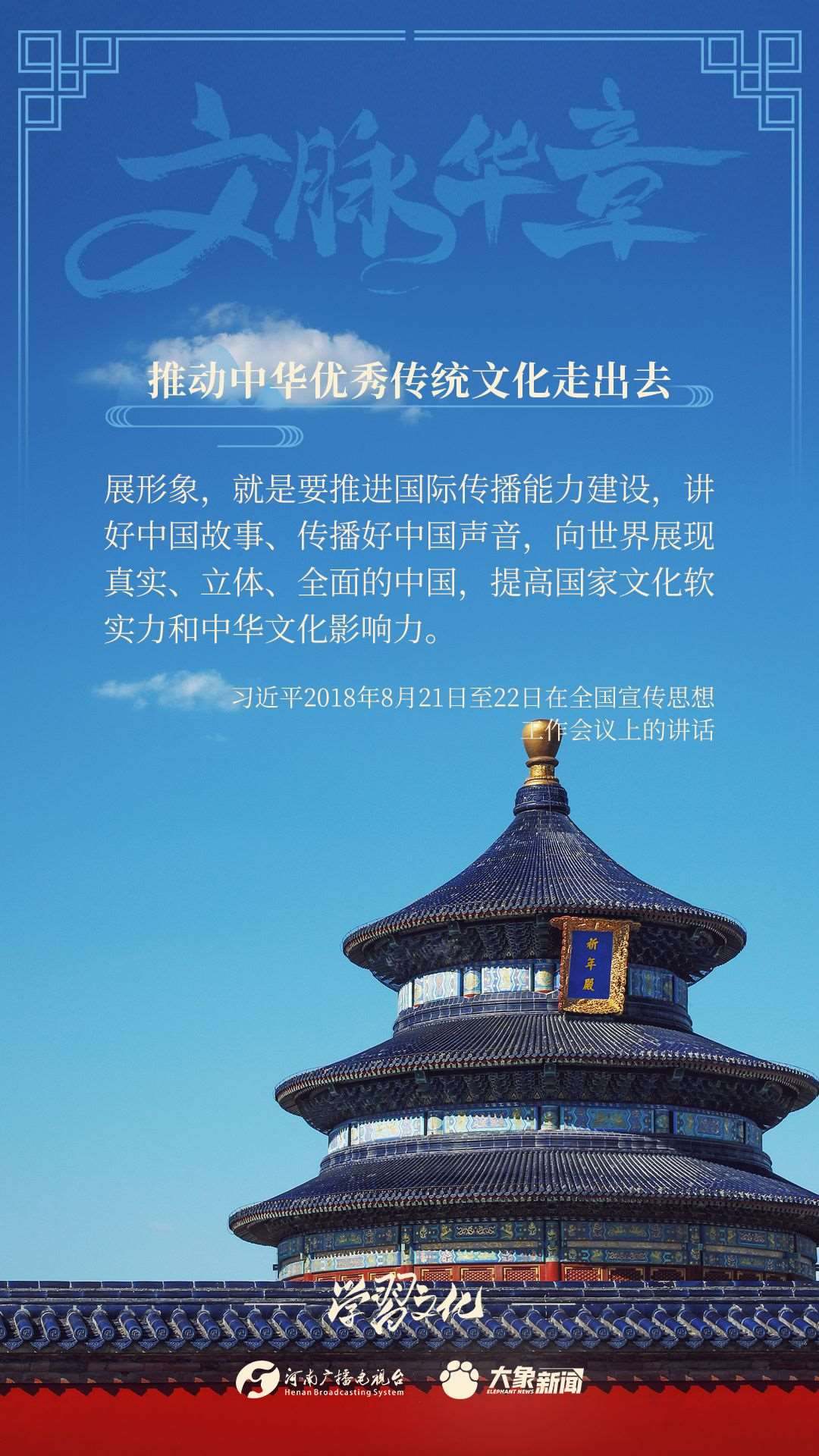 黨的十八大以來,習近平總書記高度重視中華優(yōu)秀傳統(tǒng)文化的傳承發(fā)展,突出強調推動中華優(yōu)秀傳統(tǒng)文化走出去,作出了一系列重要論述,大象新聞邀您一起學習。