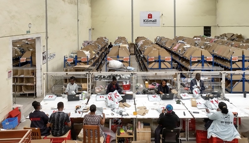 2023年7月28日,在肯尼亞姆洛隆戈,Kilimall員工在倉(cāng)庫(kù)內(nèi)分揀貨物。新華社記者 李亞輝 攝