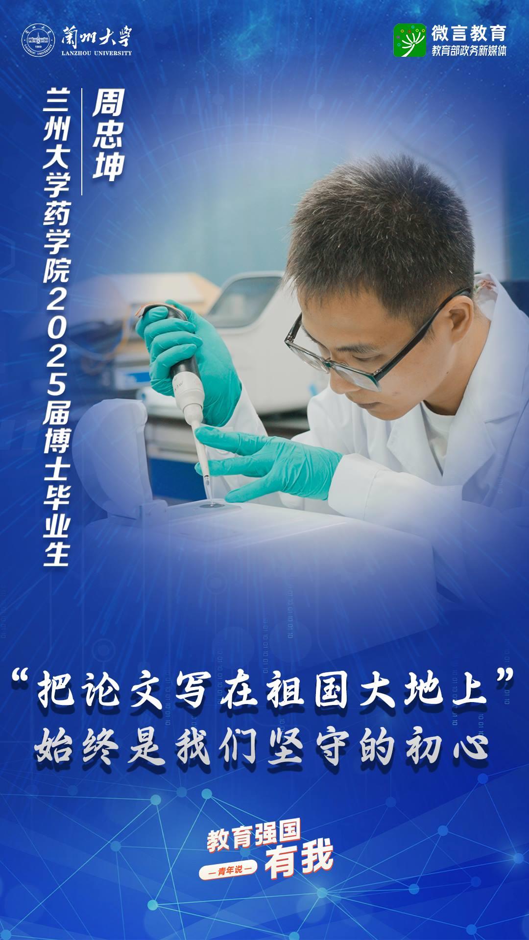 習(xí)近平總書記強(qiáng)調(diào),希望廣大青年堅(jiān)定理想信念,厚植家國情懷,練就過硬本領(lǐng),發(fā)揚(yáng)奮斗精神,到祖國和人民最需要的地方發(fā)光發(fā)熱,為中國式現(xiàn)代化建設(shè)貢獻(xiàn)青春力量。教育強(qiáng)國建設(shè),青年何為?教育部政務(wù)新媒體推出“教育強(qiáng)國,有我!”網(wǎng)絡(luò)主題宣傳活動(dòng)之“青年說(報(bào)國篇)”系列,展現(xiàn)青年學(xué)子將個(gè)人理想融入國家發(fā)展的青春擔(dān)當(dāng)。今天,跟教育小微通過1個(gè)視頻和1組海報(bào),一起來看蘭州大學(xué)學(xué)子如何把論文寫在祖國大地上——