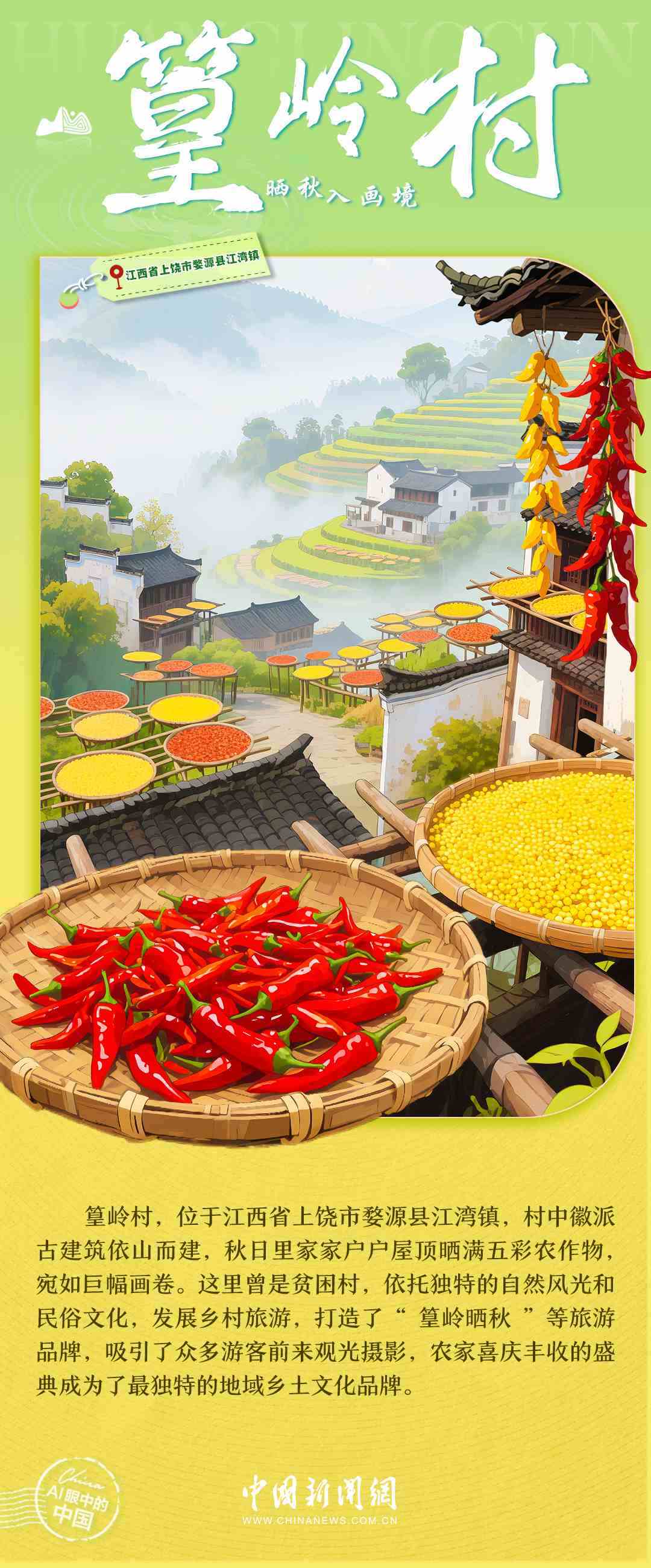 梯田的清晨,竹海的風(fēng),土樓的煙火,古寨的傍晚……中國(guó)鄉(xiāng)村正描繪出一幅產(chǎn)業(yè)興旺、生態(tài)宜居、鄉(xiāng)風(fēng)文明的時(shí)代畫(huà)卷。每一處風(fēng)景,都是中國(guó)鄉(xiāng)村全面振興的生動(dòng)注腳,每一段故事,都是探索全球鄉(xiāng)村發(fā)展路徑的中國(guó)實(shí)踐。7月6日,世界農(nóng)村發(fā)展日,讓我們一起走進(jìn)AI視野中的鄉(xiāng)村,去看看美麗中國(guó)的勃勃生機(jī)→