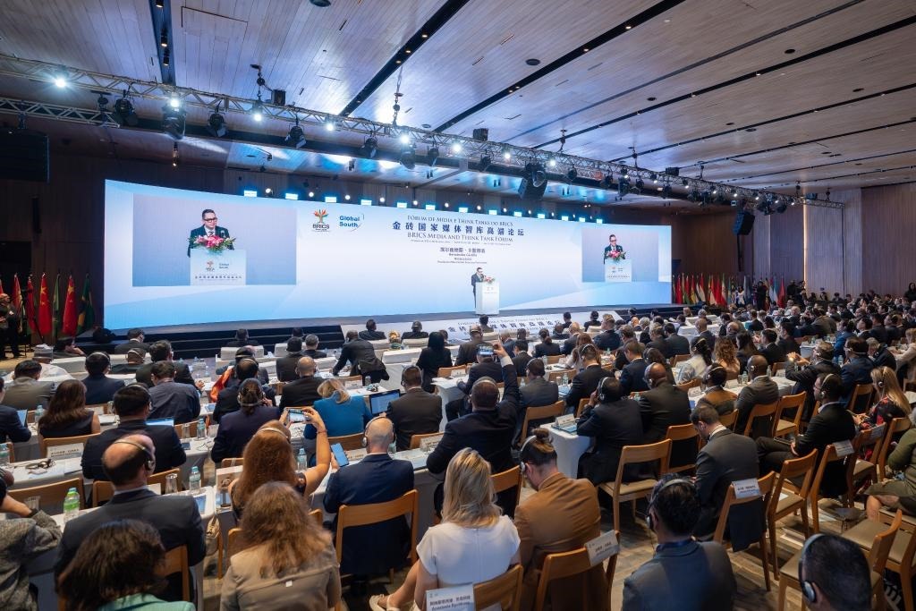金磚國家媒體智庫高端論壇當(dāng)?shù)貢r間16日在巴西里約熱內(nèi)盧舉行。來自包括金磚成員國及伙伴國在內(nèi)的36個國家近150家媒體、智庫、政府機(jī)構(gòu)和企業(yè)以及中美洲議會等地區(qū)組織的250余名代表出席論壇,共話金磚國家媒體智庫在世界變局中的責(zé)任與擔(dān)當(dāng)。