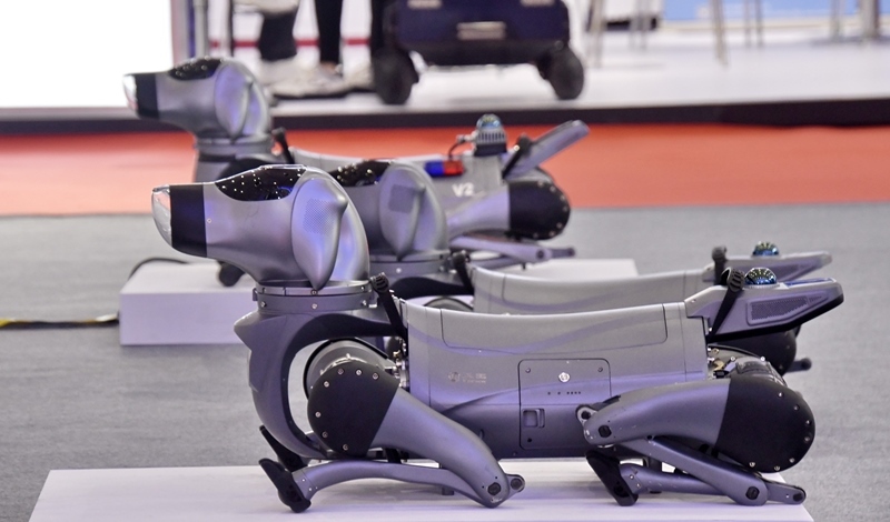 這是8月8日拍攝的2025世界機(jī)器人大會上展出的智能機(jī)器狗。