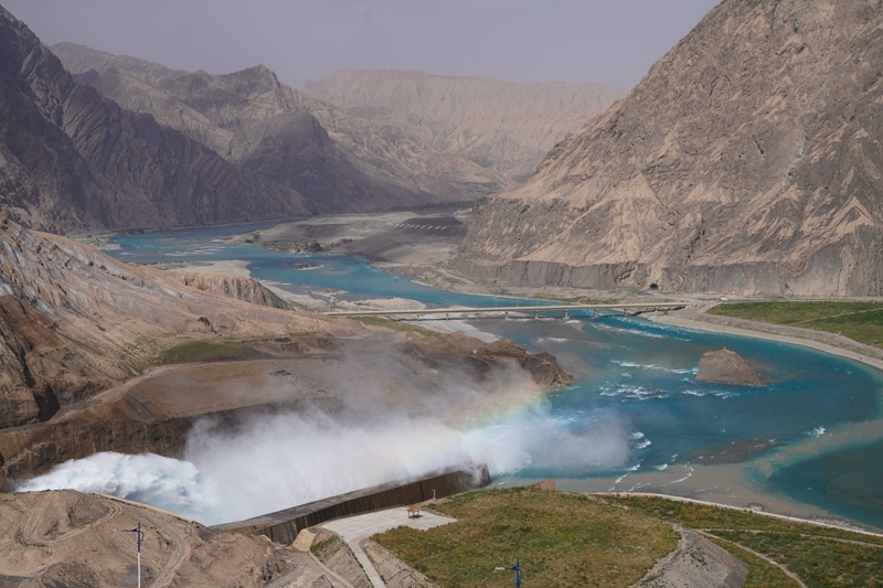 這是8月7日拍攝的阿爾塔什水利樞紐工程。