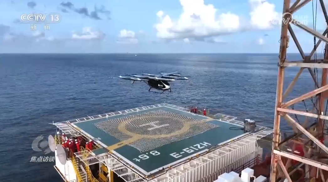 這天,一架兩噸重的電動垂直起降航空器搭載著水果和藥品,從深圳市區(qū)起飛,歷經(jīng)58分鐘的跨海域飛行,抵達(dá)距深圳海岸線150公里的海上油氣平臺,為平臺工作人員送去物資。