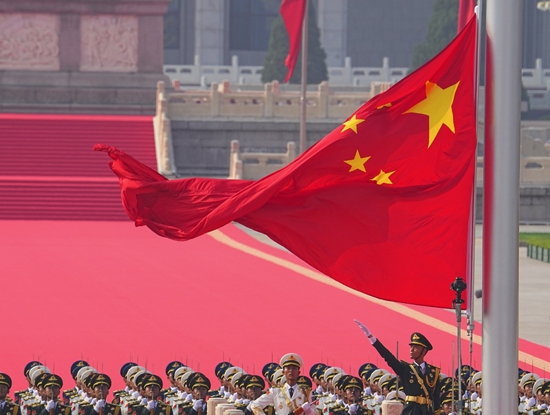 9月3日,紀(jì)念中國(guó)人民抗日戰(zhàn)爭(zhēng)暨世界反法西斯戰(zhàn)爭(zhēng)勝利80周年大會(huì)在北京隆重舉行。這是國(guó)旗護(hù)衛(wèi)隊(duì)在行進(jìn)中。