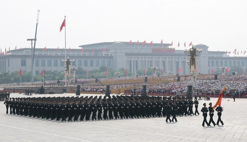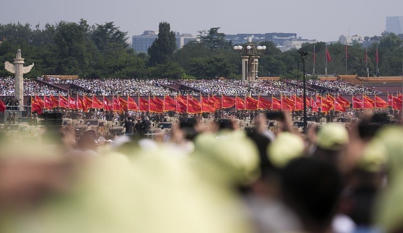 9月3日,紀(jì)念中國人民抗日戰(zhàn)爭暨世界反法西斯戰(zhàn)爭勝利80周年大會在北京隆重舉行。這是民兵方隊接受檢閱。
