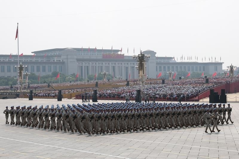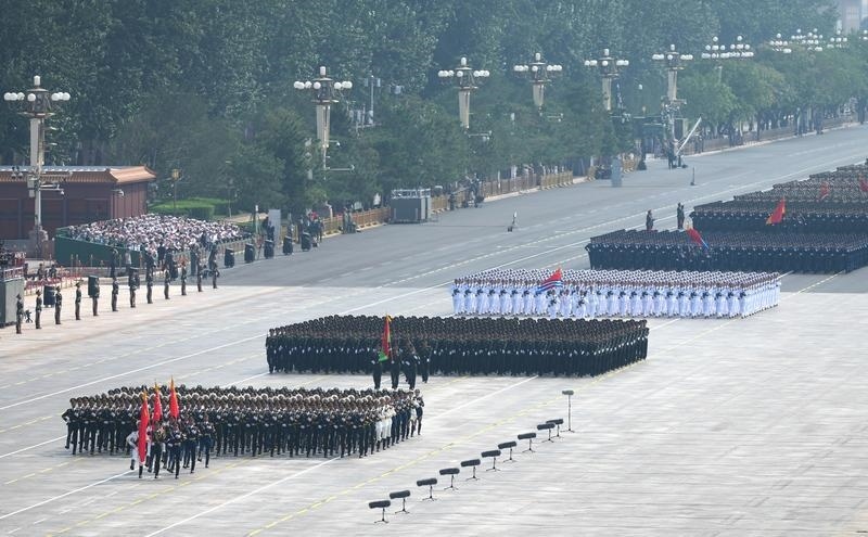 9月3日,紀(jì)念中國人民抗日戰(zhàn)爭暨世界反法西斯戰(zhàn)爭勝利80周年大會在北京隆重舉行。這是徒步方隊接受檢閱。