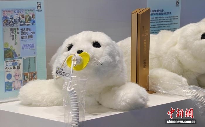 圖為北京千展新世代智能機(jī)器人科技有限公司展臺上展出的認(rèn)知功能維護(hù)機(jī)器人。(中新網(wǎng)記者韓輝 攝)