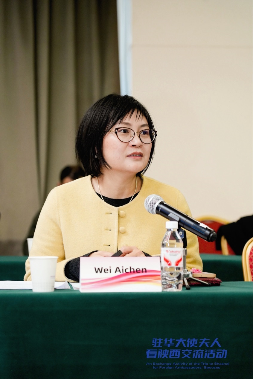 王玉娥的分享為駐華大使夫人打開了陜西婦女事業(yè)的“全景圖”,女性代表、西安宏源視訊設(shè)備有限責(zé)任公司CEO黃姍姍,“愛心媽媽”代表、西安市蓮湖區(qū)艾樂生社會工作服務(wù)中心主任韋艾辰的發(fā)言,則是這幅圖景中最鮮活的“特寫鏡頭”。